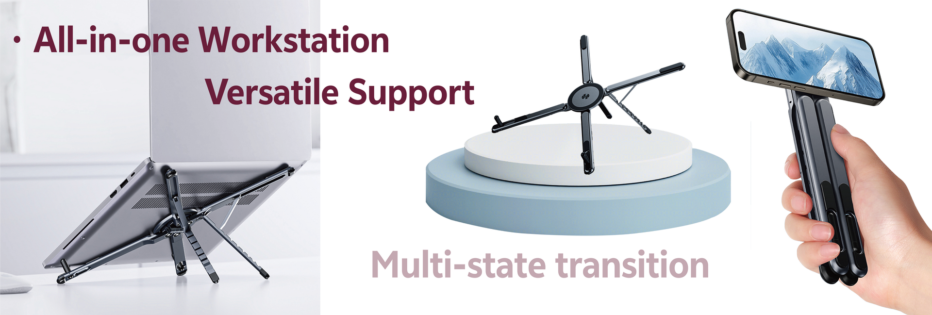 带磁环的可折叠笔记本电脑和铝制电话支架