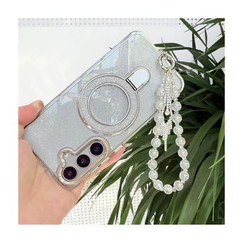 原装豪华水晶不褪色镀金吊坠手机链,带金属支架手机套,适用于银河S25 S25 + 套装